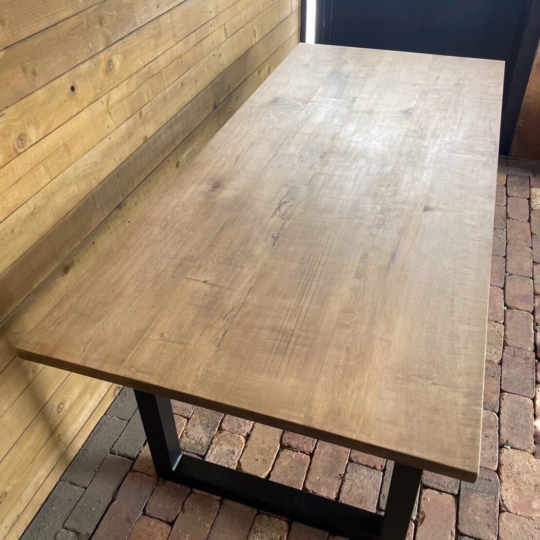 やさしい木目としっとりとした質感、そして無骨なアイアン脚が織りなすバランスが魅力。